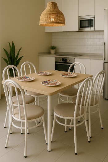 Renove sua cozinha com este conjunto de mesa e cadeiras desenvolvido para oferecer durabilidade, conforto e excelente aproveitamento de espaço. Ideal para ambientes modernos, compactos ou integrados, o conjunto combina estética leve com robustez estrutural.