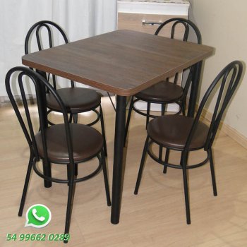 Este conjunto de mesa (68×90 cm) e 4 cadeiras foi projetado para otimizar cada centímetro sem abrir mão da elegância e resistência.